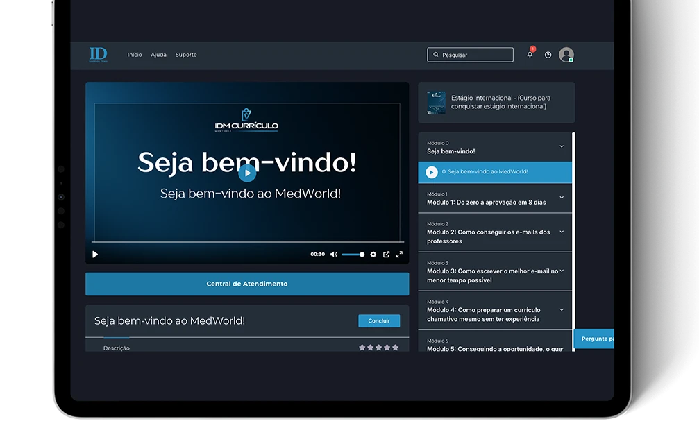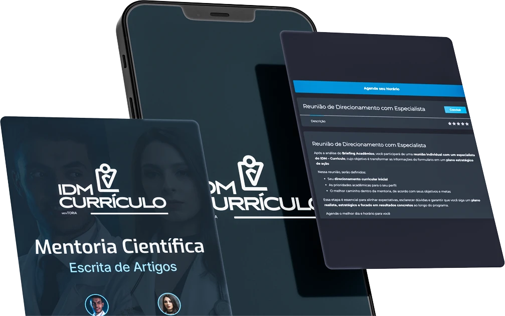 O IDM – Mentoria Curricular é um programa completo de planejamento e execução acadêmica, que conecta estratégia, orientação e oportunidades reais para a construção de um currículo competitivo para a residência médica. Ao ingressar no IDM, você passa a ter acesso a um ecossistema acadêmico integrado, que contempla diferentes frentes da sua formação curricular.